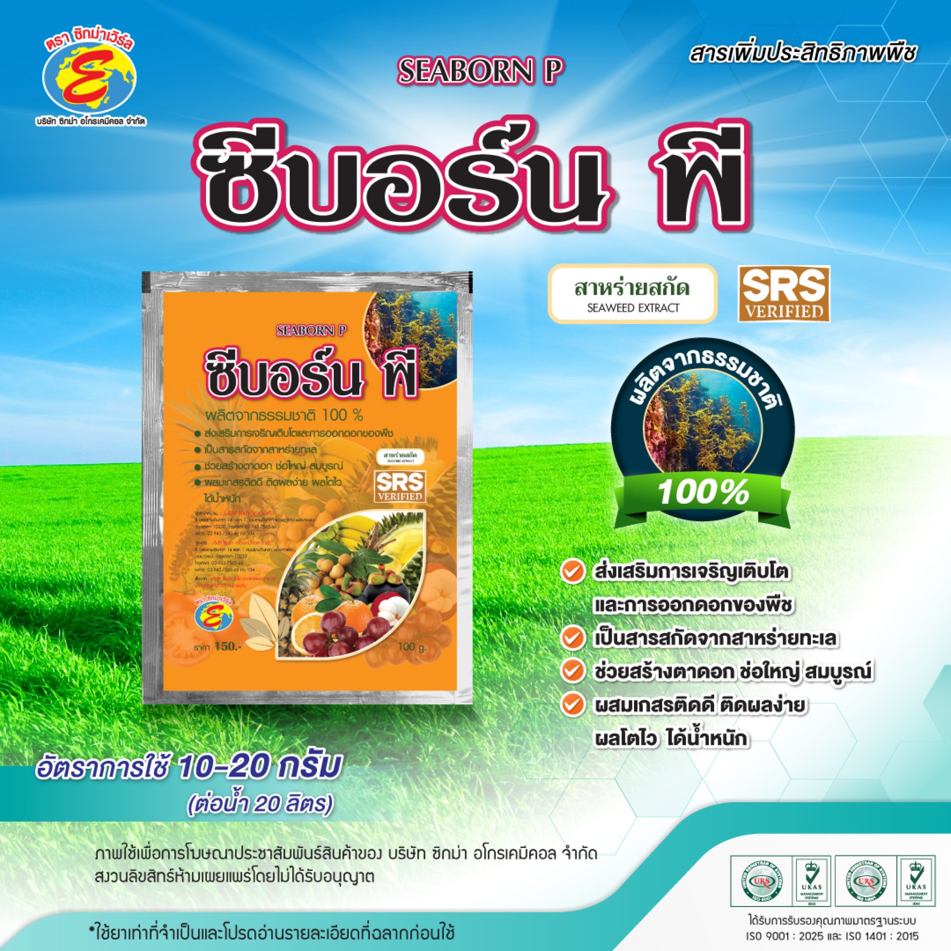 ผสม "ซีบอร์น พี" 10-20 กรัม ต่อน้ำ 20 ลิตร ฉีดพ่นทุกๆ 7-14 วัน สำหรับพืชแต่ละชนิดหรือแต่ละระยะการเจริญเติบโต เช่น ระยะกล้า ระยะแตกยอด ระยะออกดอก ระยะติดผล